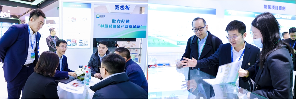 此次展会上,,,,z6com·尊龙凯时碱性电解槽制氢成套系统、、、、催化剂、、、双极板系列产品集体亮相,,致力打造“氢能装备全产业链企业”,,,,引众多国内外领导、、、、行业专家和参观者驻足参观,,并现场进行深入讨论交流。。。。